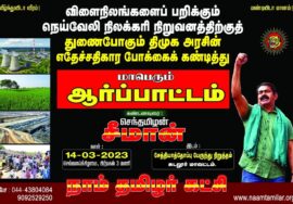 Contact Us To Add Your Business விளை நிலங்களைப் பறிக்கும் நெய்வேலி நிலக்கரி நிறுவனத்திற்குத் துணைபோகும் திமுக அரசின் எதேச்சதிகாரபோக்கைக் கண்டித்து மாபெரும் ஆர்ப்பாட்டம் சுரங்க விரிவாக்கப் பணிகளுக்காக நெய்வேலியைச்